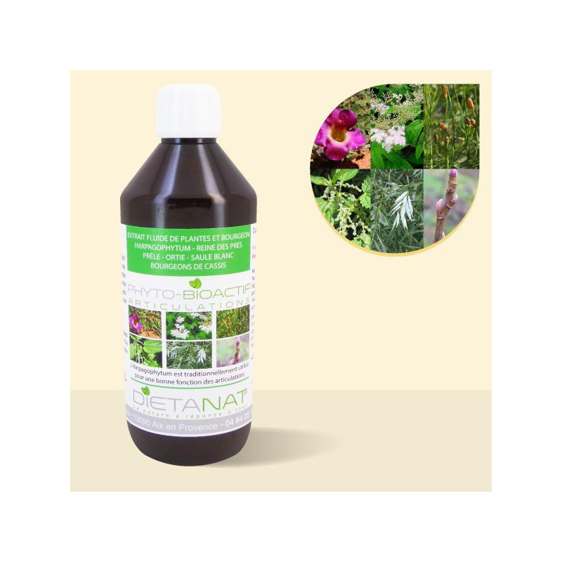 - Ortie, Prêle, Harpagophytum Procumbens, Reine des Prés, Saule blanc et macérât concentré de bourgeon de Cassis. Formule améliorée avec l'ajout du Saule blanc et du macérât concentré de bourgeon de Cassis.